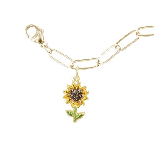 Rembrandt Painted Sunflower Bracelet Set in Gold Plated