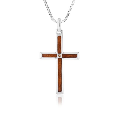 Sterling Silver Koa Wood Inlay 0.01ctw Koa Diamonds 35mm