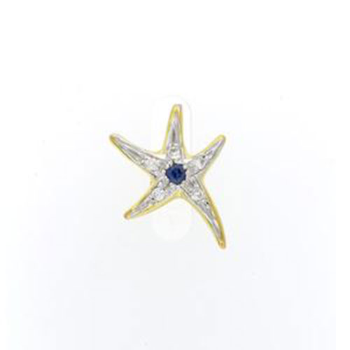 14k gold tiny starfish with sapphire/diamonds pendant - 228 ds