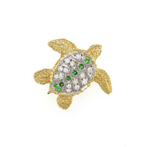 14k gold medium turtle diamond sapphire pendant - 381 ds