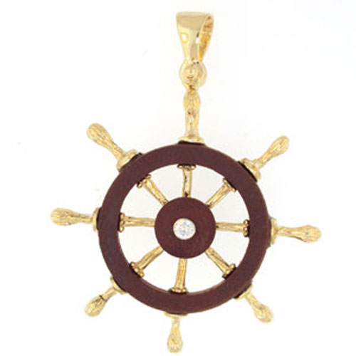 14k gold ship's wheel with diamond pendant - 396 wd