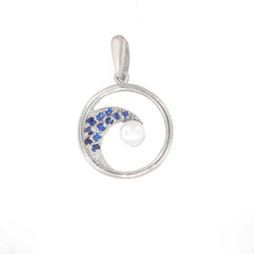 Silver wave with sapphire and pearl pendant - 459 sp