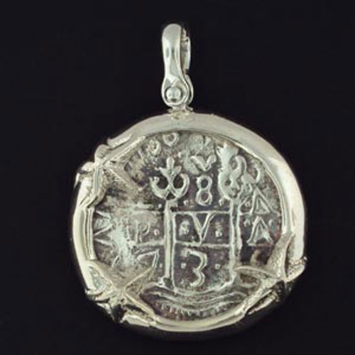 Silver large starfish framed coin pendant - 917